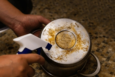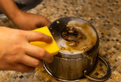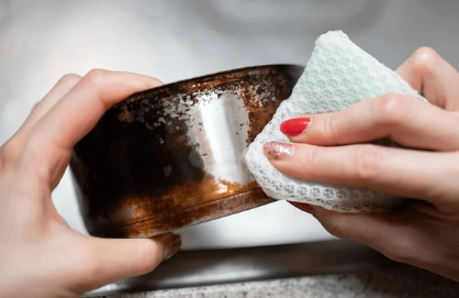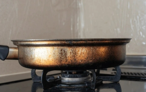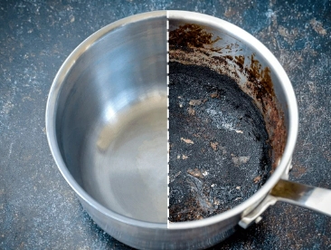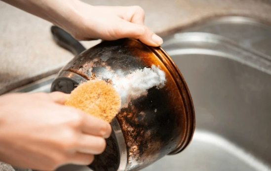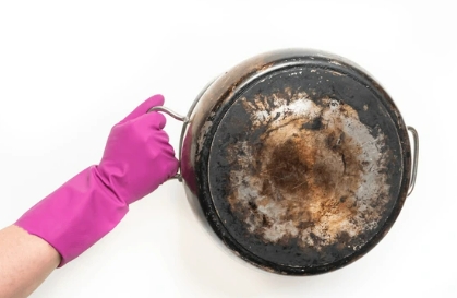 탄 자국이 냄비 바닥에 딱 붙어 있을 때