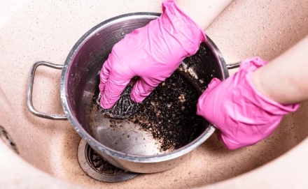 탄 찌꺼기를 화학적으로 분해합니다.