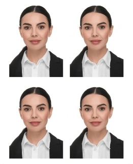 - 얼굴, 어깨, 몸 = 정면 (기울임 금지)